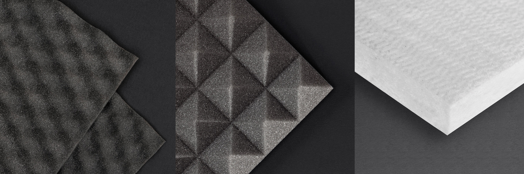 Для вирішення специфічних завдань з акустичного комфорту, таких як усунення «ехо», корекція звукового фону в приміщеннях або ізоляція корпусів обладнання, K-FLEX пропонує лінійку матеріалів на основі пінополіуретану та поліефірних волокон. Ці матеріали відрізняються рельєфом поверхні та структурою для досягнення максимального результату в конкретних умовах.